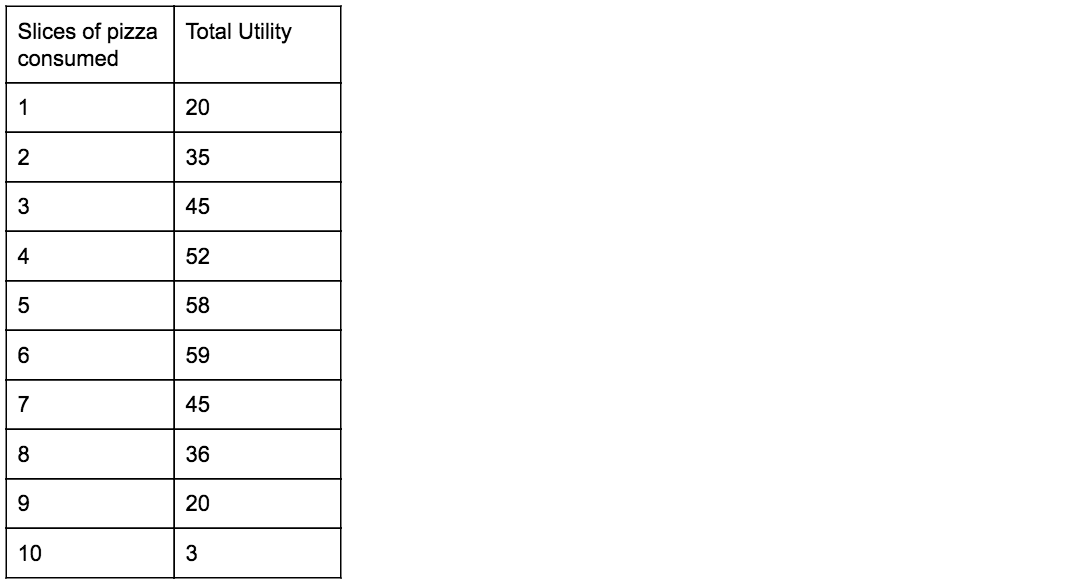For the questions below, refer to the following table showing Jenny's Total Utility from eating pizza.
