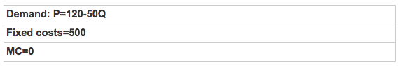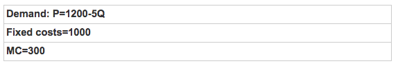 Find the profit maximizing price chosen by the monopolist under the following market conditions: