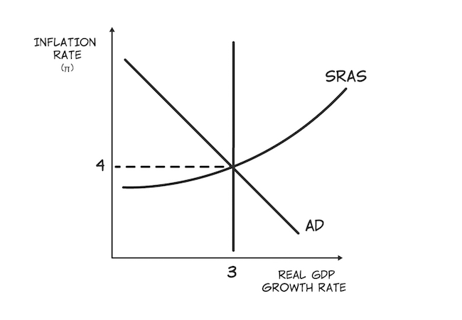 3. Suppose the money supply growth rate of the economy shown above is 5.5%. What is the nominal GDP growth rate?